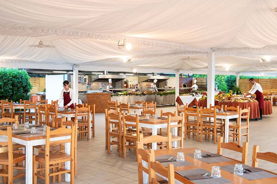RISTORAZIONE: I nostri chef ti portano in un viaggio fra i sapori della Puglia, le tradizioni italiane e delizie di tutto il mondo. Ogni giorno, con lo show cooking, preparano a vista piatti irresistibili. Hai a disposizione: Ristorante centrale, a buffet e con show cooking. La Pinseria Ethra, per gustare una deliziosa pinsa. Il Ristorante Mediterraneo, sul mare (a pagamento). Il Ristorante Scirò, in spiaggia. Il Ristorante gourmet Il Gusto, presso il Calanè Resort. Se ami mangiare all’aperto, puoi prenotare il tuo tavolo nell’area ombreggiata esterna, Il Patio, oppure pranzare sotto l’ombrellone con la Sea Box. Per chi ha bimbi piccoli c’è la Baby Kitchen: con tavoli, sedie e seggioloni, una ricca scelta di alimenti durante l’orario dei pasti. Rendiamo ogni tuo pasto un momento speciale: al Valentino Resort, il gusto si unisce alla convivialità. Abbiamo ogni attenzione per il tuo benessere: nell’offerta e nella corretta informazione sugli allergeni. Per questo trovi sempre una grande scelta di alimenti senza glutine, lattosio o uova, sia confezionati che freschi.