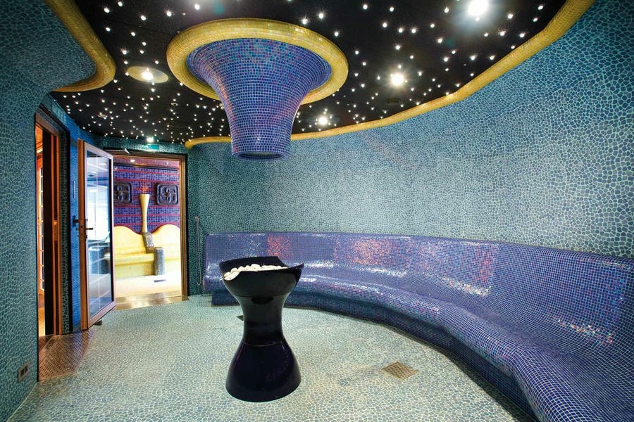 Superficie: 31,3 mq, 1 letto matrimoniale (o 2 letti singoli), 1 divano letto, grande balcone privato, spogliatoio, bagno con doccia e vasca idromassaggio.