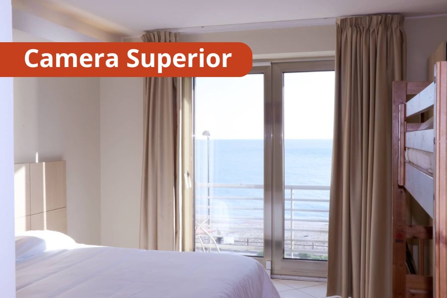 CAMERE: Le Camere Standard ubicate sui vari piani dell’Hotel sono ampie ed insonorizzate. Alcune camere offrono vista interna. Arredate in stile moderno con arredi in faggio naturale si distinguono per comodità e funzionalità. Ideali per un soggiorno di lavoro. Ciascuna camera dispone di bagno privato con doccia . Le Camere Superior tutte con vista mare e dotate di balconcino privato con tavolino e sedie, offrono una spettacolare vista regalando panorami unici. Dalle camere Superior si gode la vista della Costiera Amalfitana. Eleganti e luminose sono ideali per un soggiorno di mare in coppia o in famiglia. Le Superior possono essere anche Triple e Quadruple