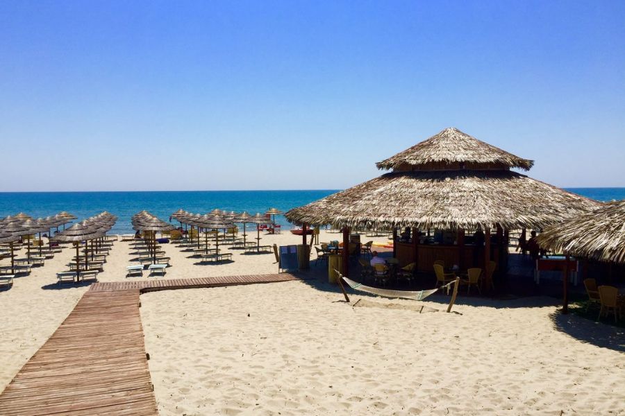SPIAGGIA: La spiaggia è situata a circa 1,2 km dalla struttura ed è raggiungibile in 5 minuti servizio navetta ad orari prestabiliti. Il servizio spiaggia è incluso nella Tessera Club e comprende 1 ombrellone e 2 lettini a camera in file in base alla disponibilità.