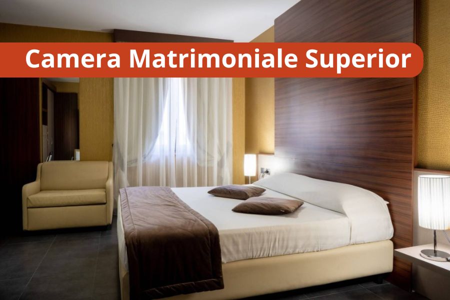 CAMERE: Le camere dell'Hotel Premiere sono caratterizzate da un design moderno ed elegante, ideali sia per viaggi di lavoro che di piacere. Ogni stanza offre un ambiente accogliente e rilassante grazie ai colori neutri e agli arredi essenziali. Le camere variano in dimensioni e comfort, garantendo una sistemazione adeguata per ogni esigenza, dal relax delle coppie alla praticità dei viaggiatori singoli. Matrimoniale Standard - Le camere Standard sono il connubio perfetto tra modernità ed eleganza. Graziose ed accoglienti, perfette per i viaggi di lavoro ma anche per i soggiorni di piacere. I colori neutri e l’essenzialità degli arredi contribuiscono a creare un ambiente di puro relax. Con una dimensione di 20mq è dotata di una ampia gamma di servizi a tua disposizione: parcheggio gratuito, minibar, wifi, aria condizionata, cassaforte, ampio armadio, asciugacapelli, scrivania, tv satellitare, sveglia. Matrimoniale Deluxe - Solari e accoglienti, le Camere Deluxe sono pensate per un soggiorno all’insegna del relax. Dotate di vasca idromassaggio circolare. Con una dimensione di 30mq è dotata di una ampia gamma di servizi a tua disposizione: parcheggio gratuito, minibar, wifi, aria condizionata, cassaforte, ampio armadio, asciugacapelli, scrivania, tv satellitare, sveglia. Matrimoniale Superior - Ampie dallo stile italiano, le camere Superior sono adatte per ospitare coppie desiderose di relax. Dotate di vasca idromassaggio rettangolare capaci di ospitare 2 persone. Con una dimensione di 30mq è dotata di una ampia gamma di servizi a tua disposizione: parcheggio gratuito, minibar, wifi, aria condizionata, cassaforte, ampio armadio, ingresso gratuito in piscina dal check in al check out, asciugacapelli, scrivania, tv satellitare, sveglia.