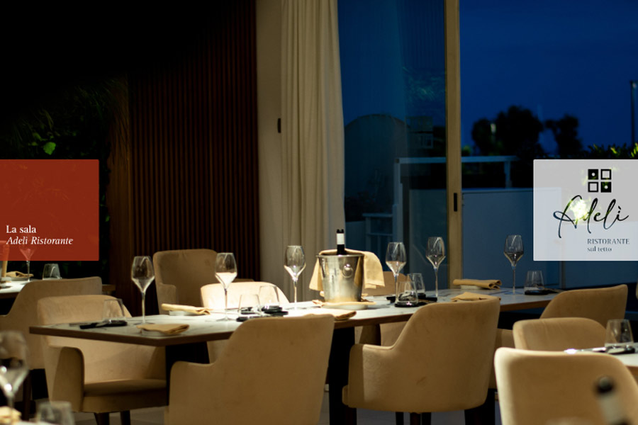 RISTORAZIONE: La nostra cucina… Specialità del Cilento e della Dieta Mediterranea. Dall’eccellenza delle materie prime alle specialità culinarie tipiche di questa cultura. La scelta che si snoda nei percorsi della tradizione enogastronomica campana, con i profumi ed i sapori del Mediterraneo, garantendo un itinerario raffinato e gustoso fra i sapori della cucina italiana del Sud Italia. Ampia disponibilità per menu personalizzati : pasti per celiaci, pasti per vegetariani, ecc. Adelì ristorante sul tetto - Sedetevi e rilassatevi: vi attende un’esperienza che coinvolgerà tutti i sensi. Tra terra e mare, tra tradizione e innovazione, un omaggio al nostro territorio e alla stagionalità dei prodotti. Una cucina che vuole sempre stupire con creazioni vicine alla tradizione, ma che, allo stesso tempo, guardano al futuro. In buona sintesi, il mangiar bene rispetta la tradizione ma guarda verso l’evoluzione. E accoglie sempre le grandi idee, proprio come facciamo noi da Adelì con i nostri clienti. Il roof garden Adelì, da un lato, rappresenta uno scorcio aperto sulla vita quotidiana, sui passanti e sulla frenetica esistenza che contraddistingue la città di Salerno ma dall’altro, proprio per la distanza che lo separa dal panorama, costituisce un’oasi sicura dove potersi rilassare nel migliore dei modi.