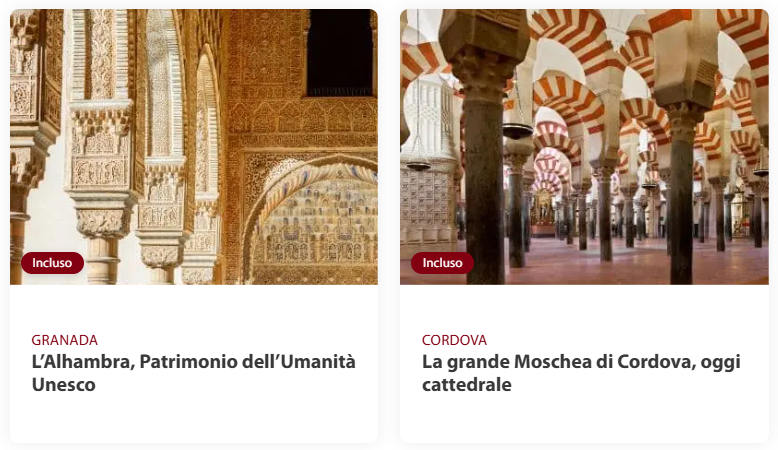 Prima colazione. Mattinata dedicata alla visita guidata dell’Alhambra, la meraviglia di Granada, dichiarata Patrimonio dell’Umanità dall’Unesco. Si tratta di un maestoso complesso di palazzi e fortezze costruito nel XIII secolo dai sultani nasridi, l’ultima dinastia musulmana ad aver regnato in Spagna. Esempio eccezionale di architettura islamica e moresca alla quale si sono aggiunti elementi di arte mudejar e rinascimentale. La visita include i Palacios Nazaríes, il cuore dell'Alhambra, con cortili incantevoli e decorazioni finissime, e i Giardini del Generalife, famosi per la loro bellezza. Pomeriggio a disposizione. Cena e pernottamento.