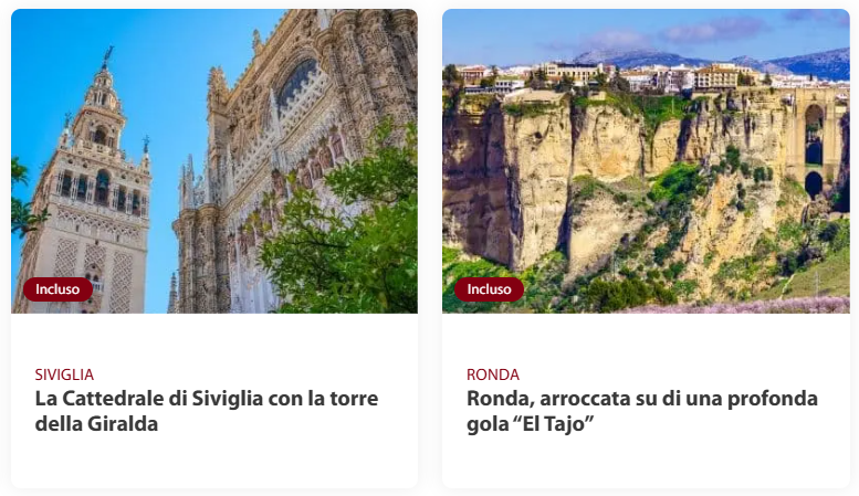 Prima colazione. Mattinata dedicata alla visita guidata di Siviglia, il capoluogo e la città più grande dell’Andalusia ma soprattutto l’anima della regione e l’incarnazione del famoso modo di vivere andaluso. Situata sulle rive del fiume Guadalquivir, ha un ricco patrimonio architettonico arabo, quartieri dal profondo sapore popolare come Triana e La Macarena e un centro storico medievale formato da tortuosi e stretti vicoli e quartieri aristocratici, ricchi di cortili e di piazzette nascoste. I palazzi e le chiese sono imponenti e l'architettura romana, islamica, gotica, rinascimentale e barocca è la più prestigiosa del sud della Spagna. Si visiteranno la Cattedrale, la terza chiesa più grande del mondo, con la Giralda, la torre alta 90 metri che era originariamente il minareto della moschea sui cui resti venne edificata la Cattedrale, e l'immensa Plaza de Espan͂a, costruita per l'Esposizione Iberoamericana del 1929, decorata con piastrelle di ceramica policroma. Pomeriggio a disposizione. Cena e pernottamento.