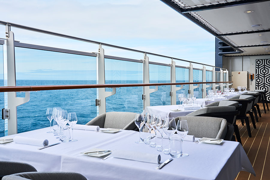• Sistemazione in SUITE Ocean Terrace: caratterizzate da spazio elegante e una superficie di 35 mq. Le finestre dal pavimento al soffitto inondano le suite di luce e le terrazze solarium private aiutano gli ospiti a rilassarsi veramente e li avvicinano all'oceano che li accompagna nel loro viaggio.
