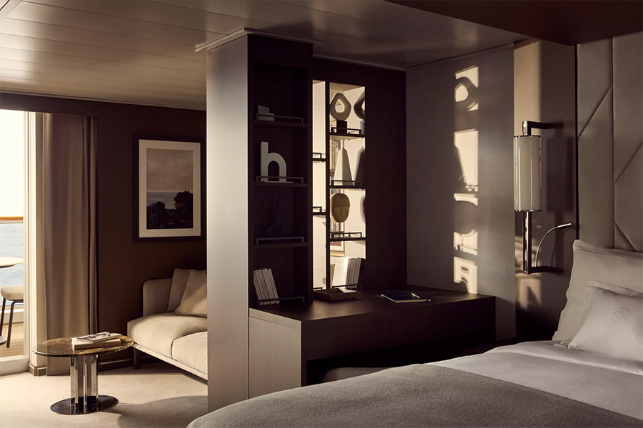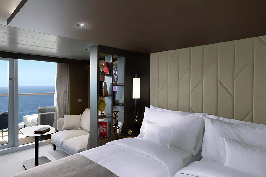 Le nostre Ocean Terrace Suite entry-level sono fra le più spaziose del settore. Durante il viaggio, gli ospiti potranno entrare in perfetta sintonia con il mare grazie alle finestre panoramiche e alla terrazza solarium privata con zona dining e daybed.