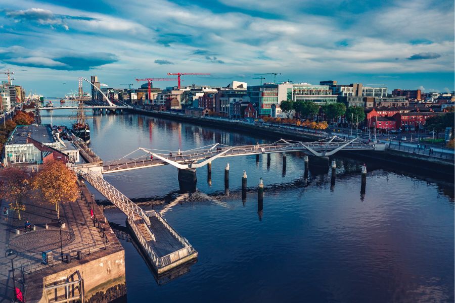 Il centro, con le sue architetture georgiane e i parchi ordinati, custodisce secoli di cultura: i cortili del Trinity College, le librerie antiche, le piazze eleganti e i vicoli che si intrecciano attorno a Grafton Street raccontano il cuore letterario e creativo della città. Lungo il fiume, ponti storici e scorci pittoreschi accompagnano il cammino verso quartieri pieni di vita.