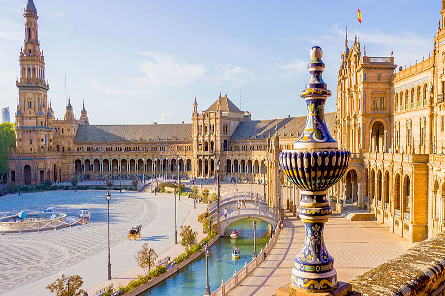 Il fiume Guadalquivir accompagna passeggiate rilassanti e scorci suggestivi, soprattutto nella zona di Plaza de España, uno degli spazi più scenografici della città, con le sue arcate, i canali e le ceramiche che raccontano le diverse regioni della Spagna.