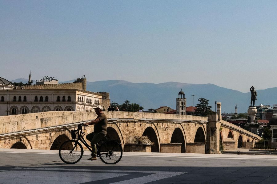 La città è divisa dal fiume Vardar e collegata dallo storico Ponte di Pietra, simbolo di Skopje, che unisce la parte più contemporanea a quella più tradizionale.