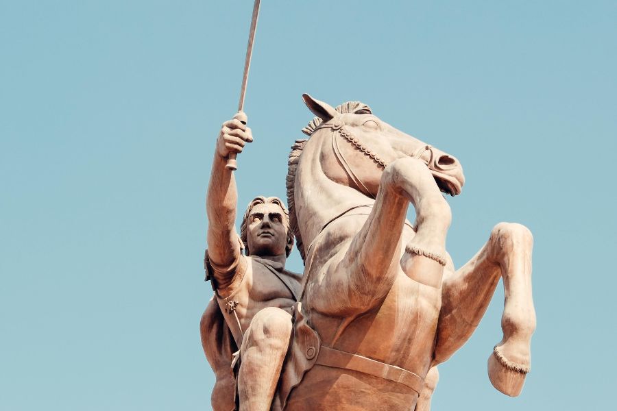 Sul lato moderno si apre Piazza Macedonia, animata da negozi, locali, caffè e monumentali sculture. Qui sorge anche l’imponente statua del Guerriero a Cavallo, circondata da fontane coreografiche e da edifici che raccontano di una capitale in continua evoluzione.