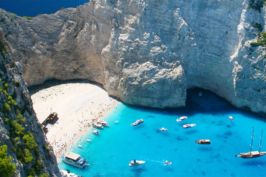 Il simbolo dell’isola è la celebre Spiaggia del Relitto (Navagio), una baia spettacolare racchiusa tra alte falesie calcaree, raggiungibile solo via mare e diventata una delle immagini più iconiche della Grecia. Ma Zante non è solo questo: lungo la costa si susseguono calette tranquille, grotte marine e fondali limpidi che invitano all’esplorazione, soprattutto in barca.