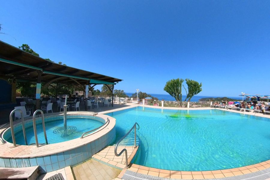 Descrizione e Servizi: la struttura offre 3 Piscine una panoramica a temperatura ambiente ottima per le torbide giornate d’estate, una Panoramica 29° con idromassaggio, nuoto controcorrente e cascata cervicale, ed una dedicata ai più piccoli alimentata ad acqua dolce con temperatura che si regola in funzione delle condizioni climatiche, garantendo così un ambiente sempre temperato e accogliente. Ampie terrazze solarium attrezzate con sdraio lettini ed ombrelloni, un comodo servizio navetta gratuito da per il centro e la spiaggia (non convenzionata) ad orari stabiliti, Wi-Fi gratuito in alcune aree comuni.