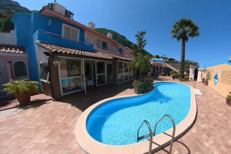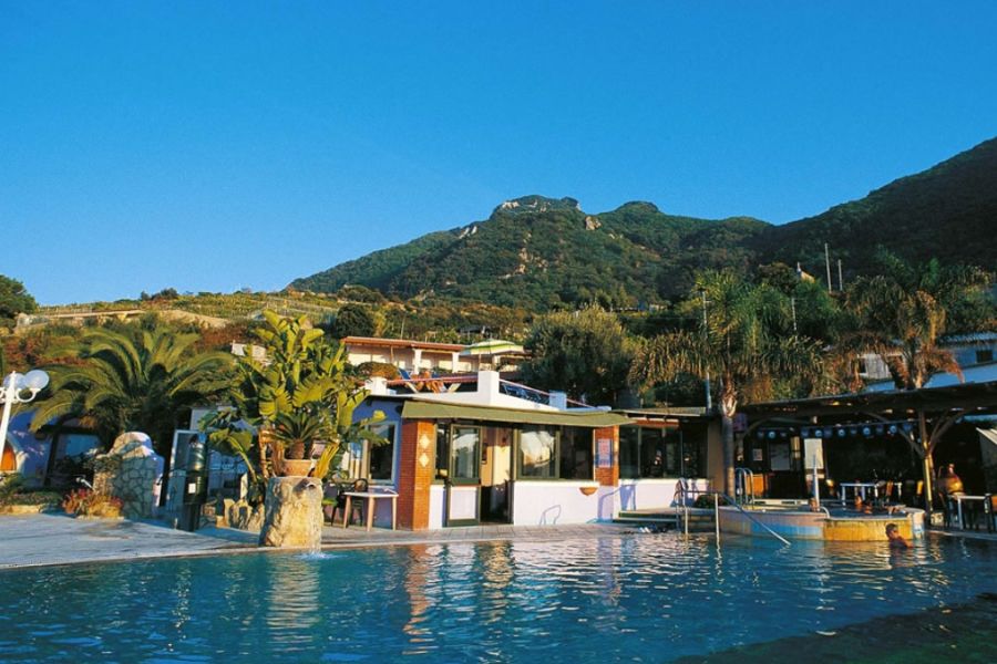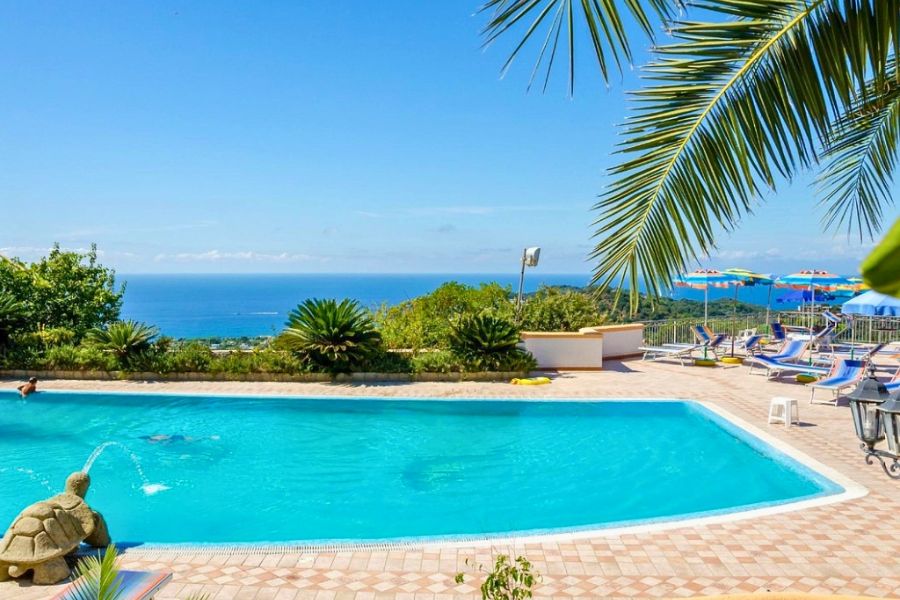 Posizione: in originale architettura mediterranea, riesce a coniugare felicemente mare e monti: la sua splendida posizione immersa nel verde a mezza costa sulla strada "Vecchia Borbonica", che collega Forio a Lacco Ameno (località Fango), offre ai suoi ospiti una calda atmosfera per una vacanza a casa di amici.
