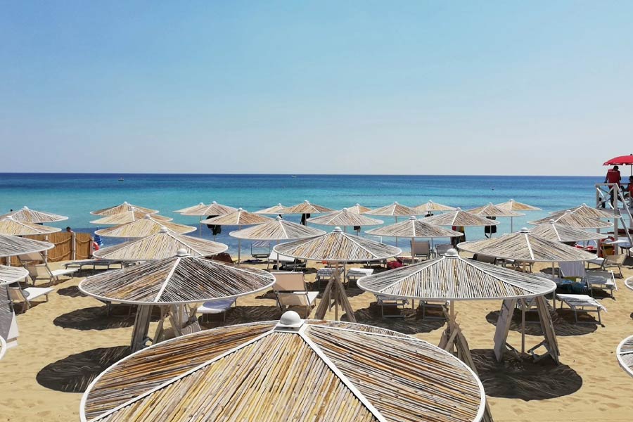 Distanza dal mare: La struttura dista circa 30 metri dal mare (spiaggia di sabbia). Spiaggia: La spiaggia è in concessione demaniale riservata unicamente ai clienti del Campo dei Messapi e dell’Hotel. Per chi soggiorna in trattamento di pensione completa il servizio spiaggia è incluso con un ombrellone e due lettini assegnati al momento dell’arrivo.